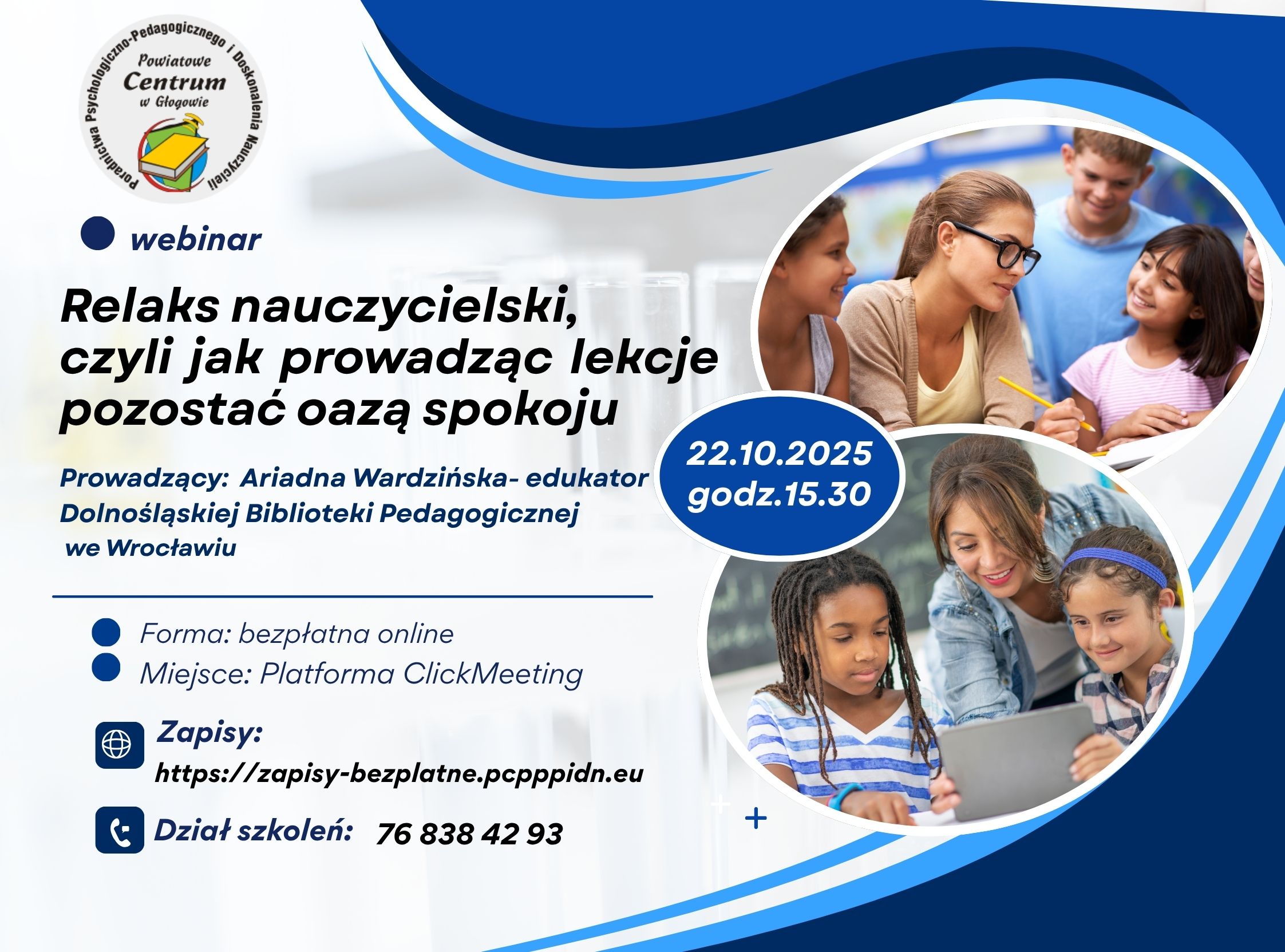 Z okazji obchodów Ogólnopolskiego Tygodnia Kariery (20-26.10.2025) członkinie Sieci Współpracy i Samokształcenia Nauczycieli doradztwa zawodowego przy PCPPPiDN w Głogowie zapraszają uczniów do wzięcia udziału w: – międzyszkolnej grze edukacyjnej (20-23.10.2025) – finale rozgrywek międzyszkolnych gry edukacyjnej w PANS (24.10.2025 godz. 9.00) – międzyszkolnym konkursie graficznym (wysyłanie plakatów do I LO do końca października) – webinarze… Czytaj wiecej →