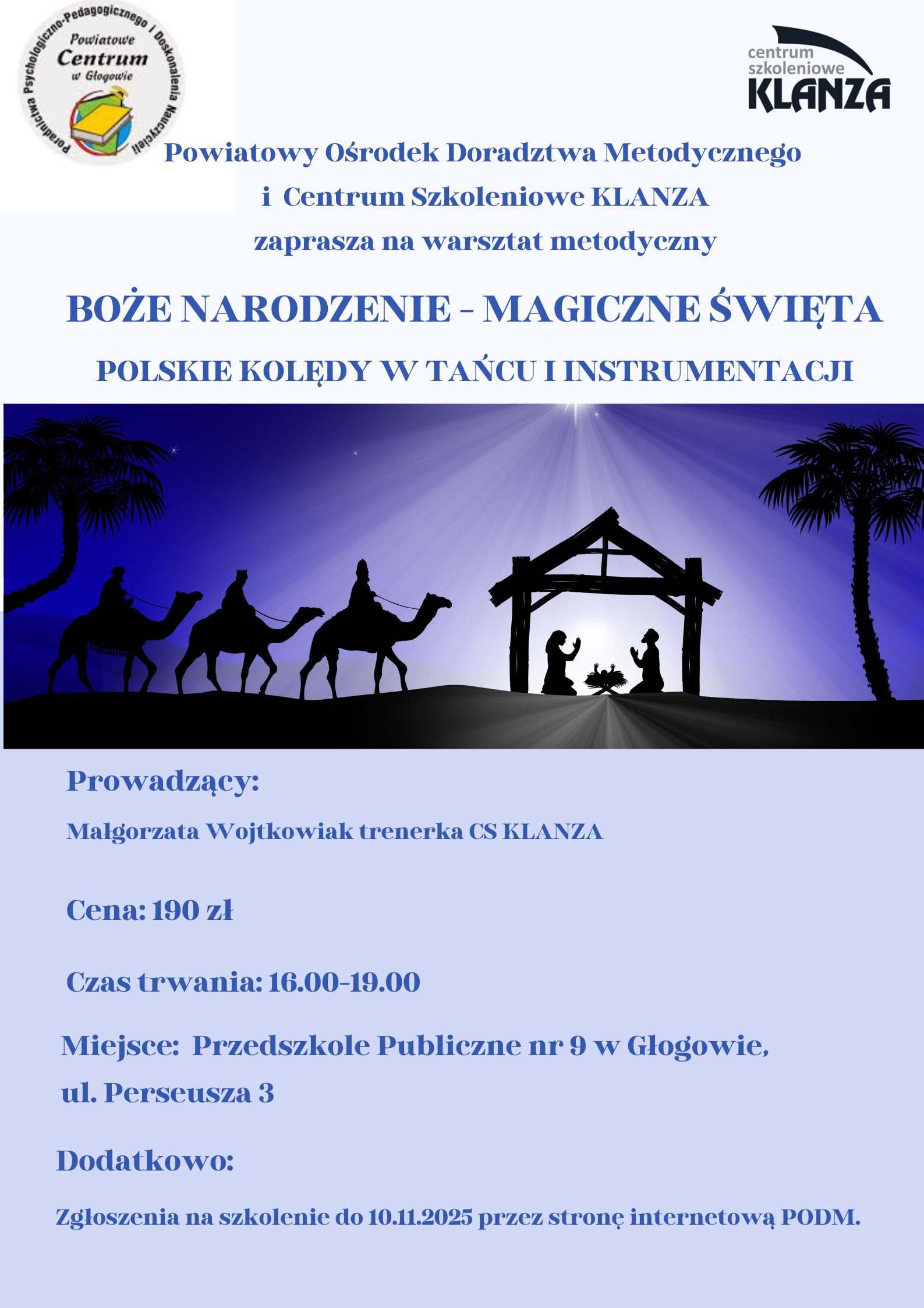 Zapraszamy na warsztaty KLANZY pt.”Boże Narodzenie – magiczne święta. Polskie kolędy w tańcu i instrumentacji”. Więcej informacji