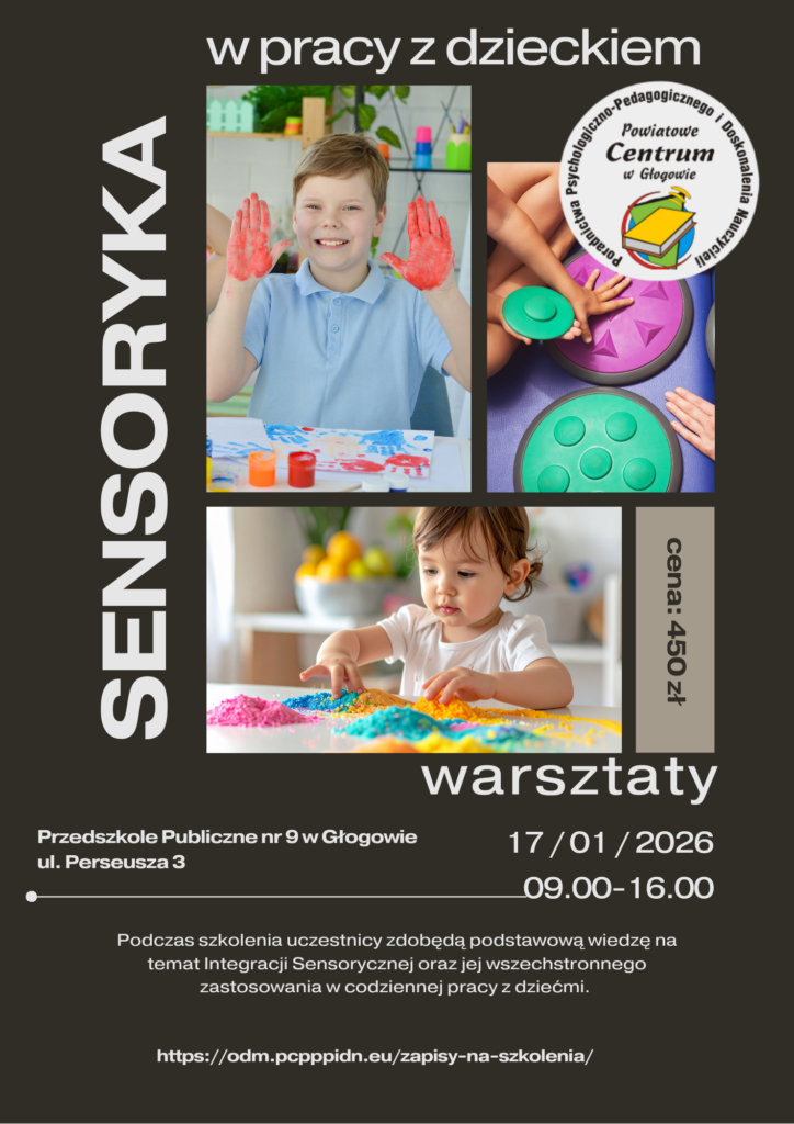 Powiatowy Ośrodek Doradztwa Metodycznego w Głogowie zaprasza nauczycieli pracujących z dziećmi w wieku 3–9 lat na praktyczne warsztaty z zakresu Integracji Sensorycznej!