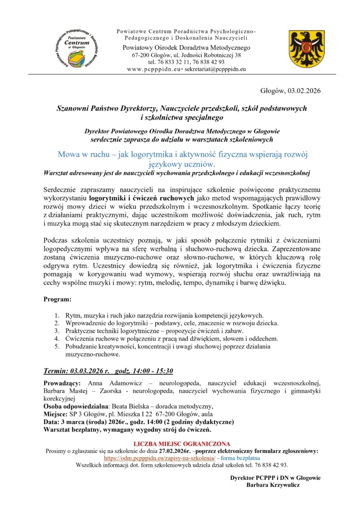 „Mowa w ruchu – jak logorytmika i aktywność fizyczna wspierają rozwój językowy uczniów” Napisany w 4 lutego 2026 Przez pcpppidn