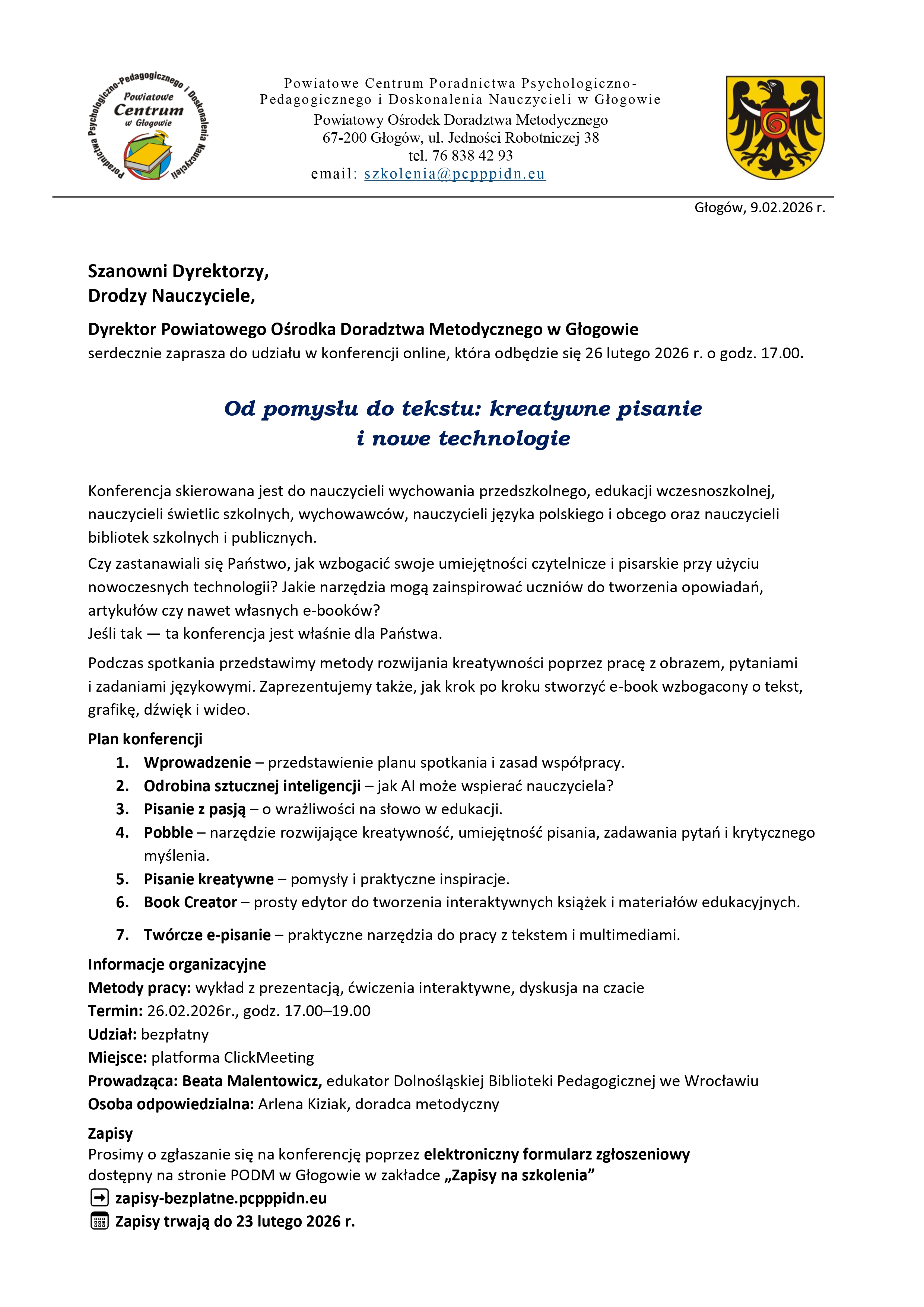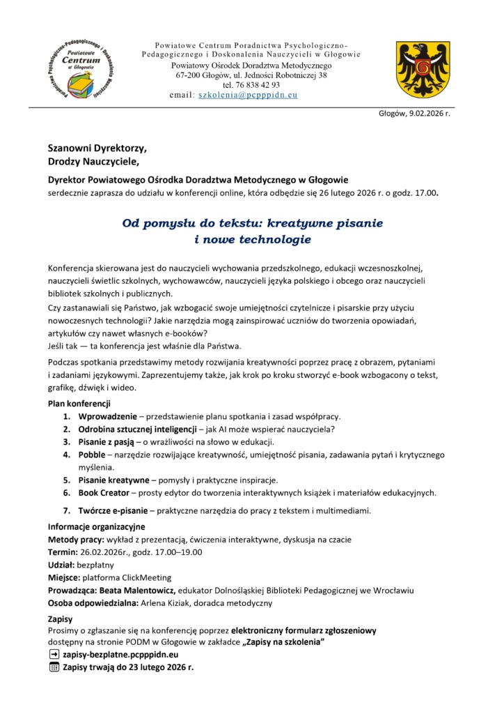 Konferencja online – Od pomysłu do tekstu: kreatywne pisanie i nowe technologie
